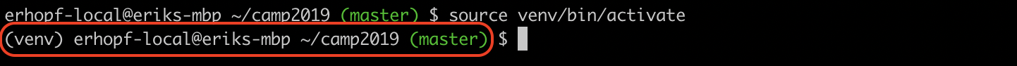 source venv/Scripts/activateAfter running this command, your command line or terminal session should be prefaced with